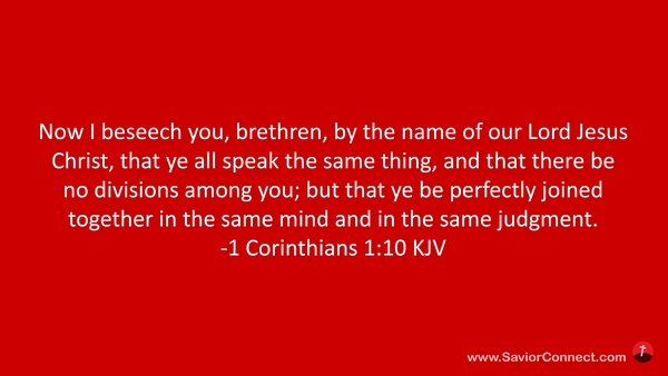 Now I beseech you, brethren, by the name of our Lord Jesus Christ, that ye all speak the same thing, and that there be no divisions among you; but that ye be perfectly joined together in the same mind and in the same judgment. -1 Corinthians 1:10 KJV