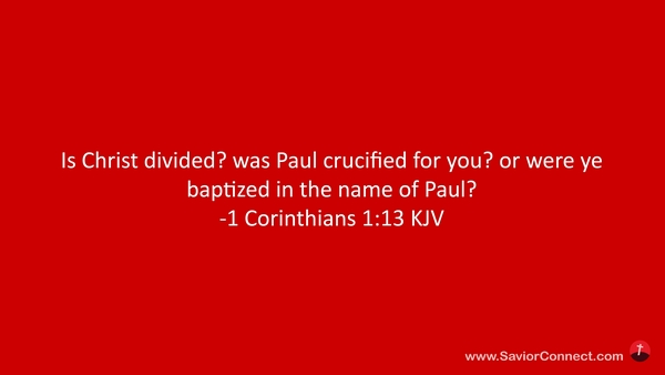 Is Christ divided? was Paul crucified for you? or were ye baptized in the name of Paul? -1 Corinthians 1:13 KJV