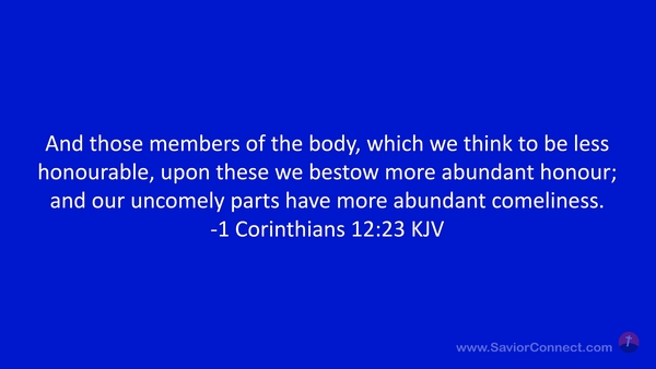And those members of the body, which we think to be less honourable, upon these we bestow more abundant honour; and our uncomely parts have more abundant comeliness. -1 Corinthians 12:23 KJV