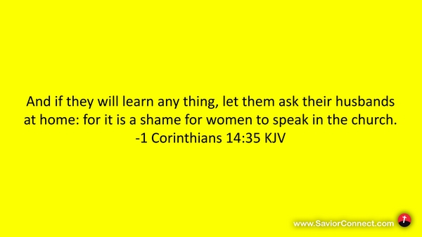 And if they will learn any thing, let them ask their husbands at home: for it is a shame for women to speak in the church. -1 Corinthians 14:35 KJV