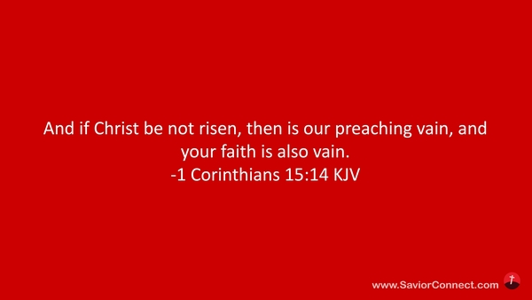 And if Christ be not risen, then is our preaching vain, and your faith is also vain. -1 Corinthians 15:14 KJV