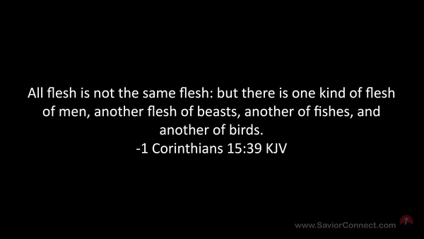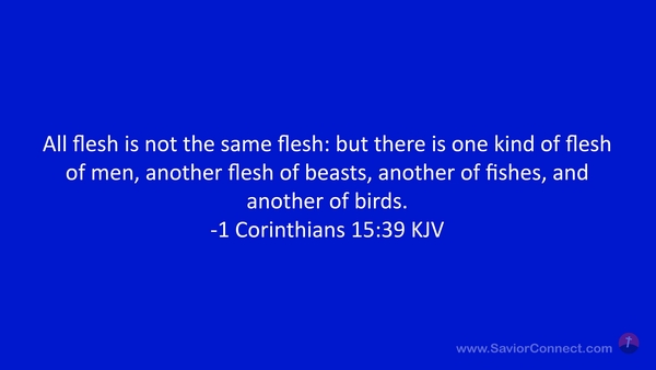 All flesh is not the same flesh: but there is one kind of flesh of men, another flesh of beasts, another of fishes, and another of birds. -1 Corinthians 15:39 KJV