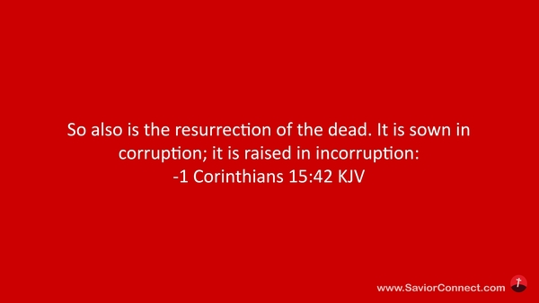 So also is the resurrection of the dead. It is sown in corruption; it is raised in incorruption: -1 Corinthians 15:42 KJV