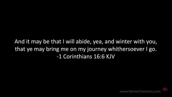 And it may be that I will abide, yea, and winter with you, that ye may bring me on my journey whithersoever I go. -1 Corinthians 16:6 KJV