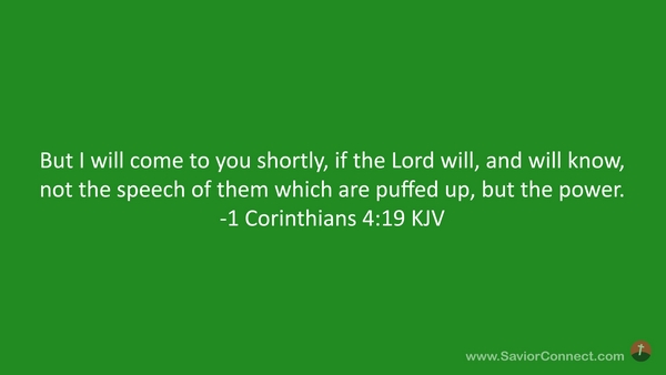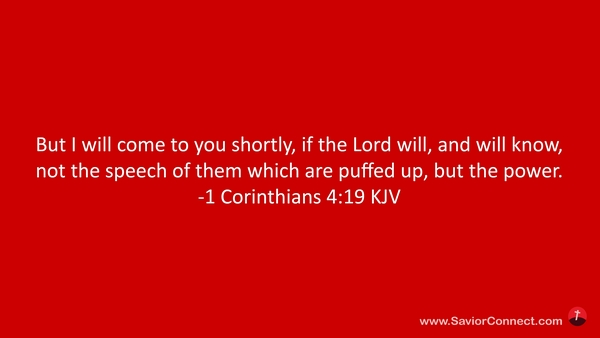 But I will come to you shortly, if the Lord will, and will know, not the speech of them which are puffed up, but the power. -1 Corinthians 4:19 KJV