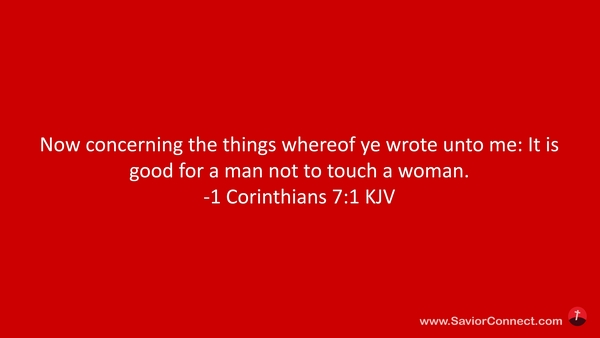 Now concerning the things whereof ye wrote unto me: It is good for a man not to touch a woman. -1 Corinthians 7:1 KJV