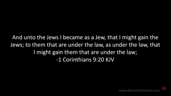 And unto the Jews I became as a Jew, that I might gain the Jews; to them that are under the law, as under the law, that I might gain them that are under the law; -1 Corinthians 9:20 KJV