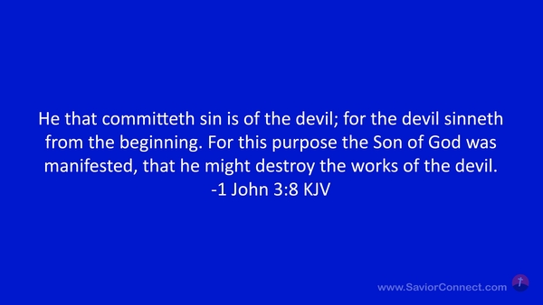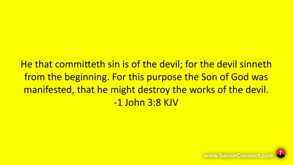 He that committeth sin is of the devil; for the devil sinneth from the beginning. For this purpose the Son of God was manifested, that he might destroy the works of the devil. -1 John 3:8 KJV