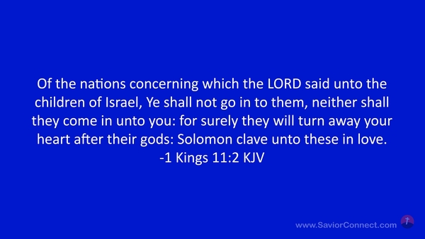 Of the nations concerning which the LORD said unto the children of Israel, Ye shall not go in to them, neither shall they come in unto you: for surely they will turn away your heart after their gods: Solomon clave unto these in love. -1 Kings 11:2 KJV