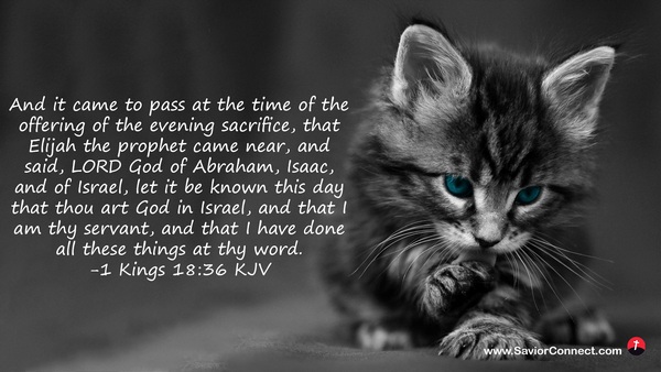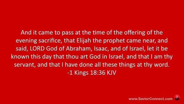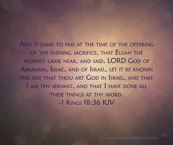 And it came to pass at the time of the offering of the evening sacrifice, that Elijah the prophet came near, and said, LORD God of Abraham, Isaac, and of Israel, let it be known this day that thou art God in Israel, and that I am thy servant, and that I have done all these things at thy word. -1 Kings 18:36 KJV