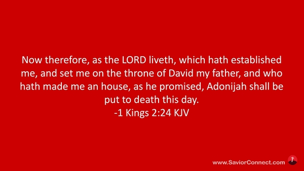 Now therefore, as the LORD liveth, which hath established me, and set me on the throne of David my father, and who hath made me an house, as he promised, Adonijah shall be put to death this day. -1 Kings 2:24 KJV
