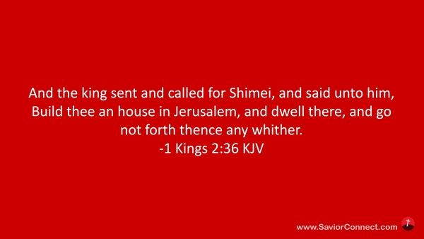 And the king sent and called for Shimei, and said unto him, Build thee an house in Jerusalem, and dwell there, and go not forth thence any whither. -1 Kings 2:36 KJV