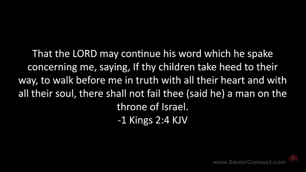 That the LORD may continue his word which he spake concerning me, saying, If thy children take heed to their way, to walk before me in truth with all their heart and with all their soul, there shall not fail thee (said he) a man on the throne of Israel. -1 Kings 2:4 KJV