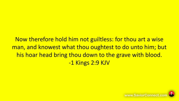 Now therefore hold him not guiltless: for thou art a wise man, and knowest what thou oughtest to do unto him; but his hoar head bring thou down to the grave with blood. -1 Kings 2:9 KJV
