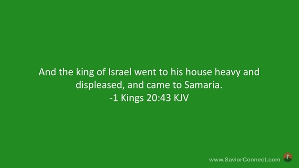 And the king of Israel went to his house heavy and displeased, and came to Samaria. -1 Kings 20:43 KJV