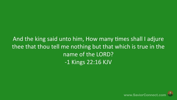 And the king said unto him, How many times shall I adjure thee that thou tell me nothing but that which is true in the name of the LORD? -1 Kings 22:16 KJV