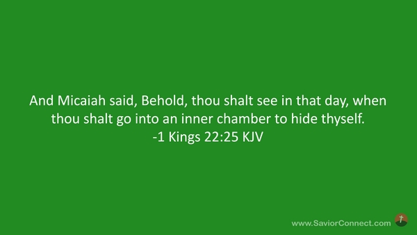 And Micaiah said, Behold, thou shalt see in that day, when thou shalt go into an inner chamber to hide thyself. -1 Kings 22:25 KJV