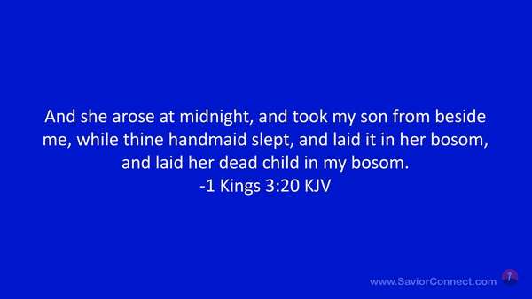 And she arose at midnight, and took my son from beside me, while thine handmaid slept, and laid it in her bosom, and laid her dead child in my bosom. -1 Kings 3:20 KJV