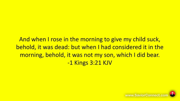 And when I rose in the morning to give my child suck, behold, it was dead: but when I had considered it in the morning, behold, it was not my son, which I did bear. -1 Kings 3:21 KJV