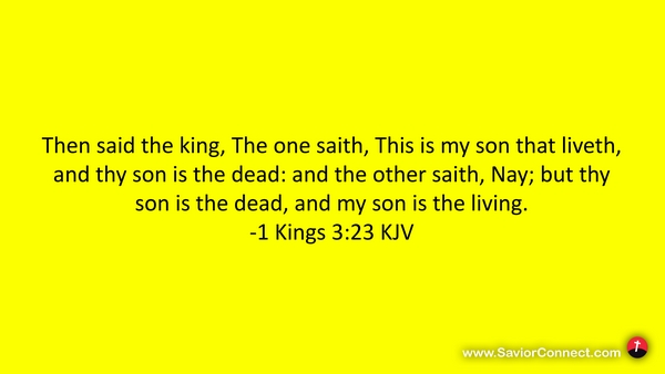 Then said the king, The one saith, This is my son that liveth, and thy son is the dead: and the other saith, Nay; but thy son is the dead, and my son is the living. -1 Kings 3:23 KJV