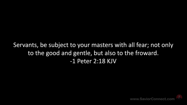 Servants, be subject to your masters with all fear; not only to the good and gentle, but also to the froward. -1 Peter 2:18 KJV
