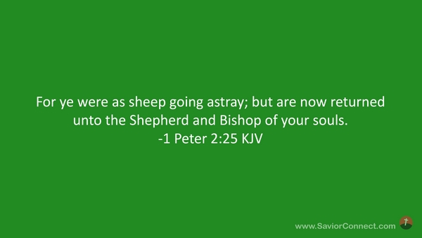 For ye were as sheep going astray; but are now returned unto the Shepherd and Bishop of your souls. -1 Peter 2:25 KJV