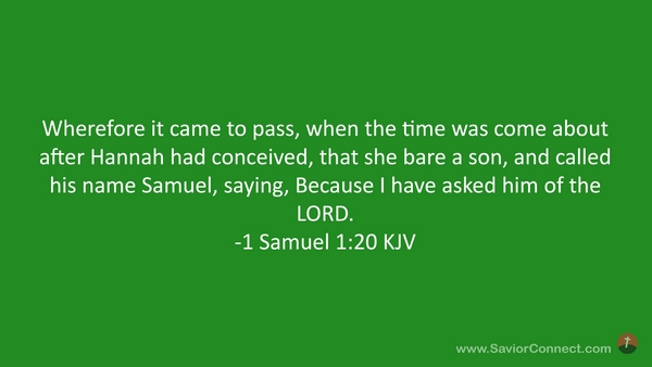 Wherefore it came to pass, when the time was come about after Hannah had conceived, that she bare a son, and called his name Samuel, saying, Because I have asked him of the LORD. -1 Samuel 1:20 KJV