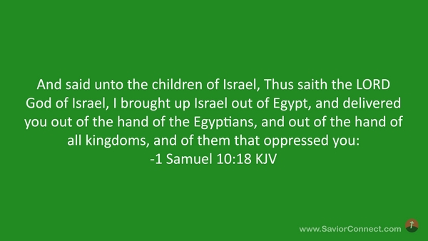 And said unto the children of Israel, Thus saith the LORD God of Israel, I brought up Israel out of Egypt, and delivered you out of the hand of the Egyptians, and out of the hand of all kingdoms, and of them that oppressed you: -1 Samuel 10:18 KJV