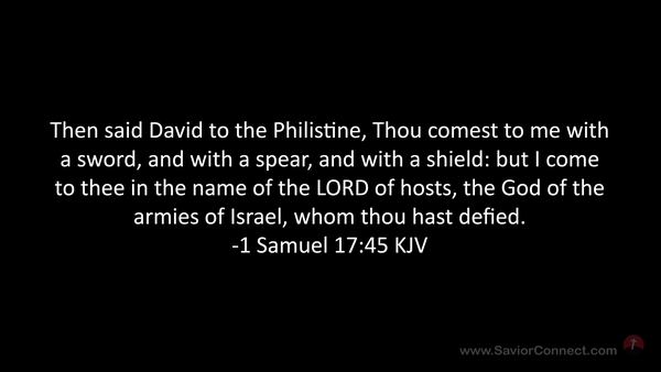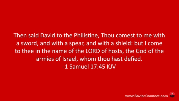 Then said David to the Philistine, Thou comest to me with a sword, and with a spear, and with a shield: but I come to thee in the name of the LORD of hosts, the God of the armies of Israel, whom thou hast defied. -1 Samuel 17:45 KJV
