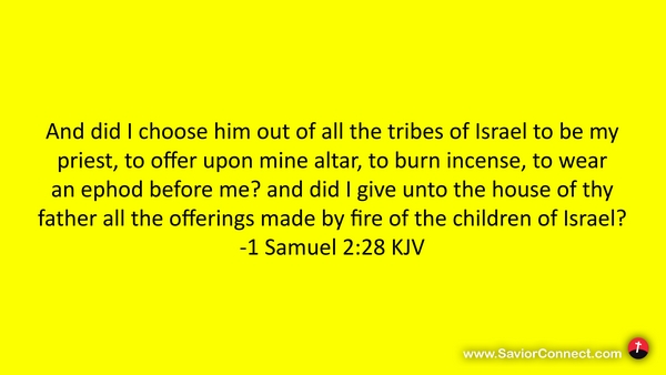 And did I choose him out of all the tribes of Israel to be my priest, to offer upon mine altar, to burn incense, to wear an ephod before me? and did I give unto the house of thy father all the offerings made by fire of the children of Israel? -1 Samuel 2:28 KJV