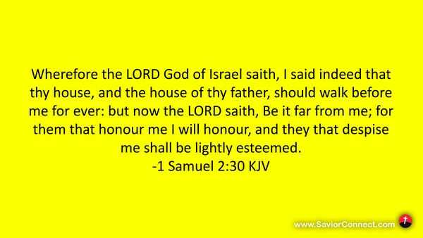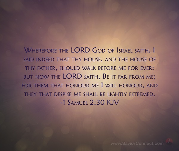 Wherefore the LORD God of Israel saith, I said indeed that thy house, and the house of thy father, should walk before me for ever: but now the LORD saith, Be it far from me; for them that honour me I will honour, and they that despise me shall be lightly esteemed. -1 Samuel 2:30 KJV