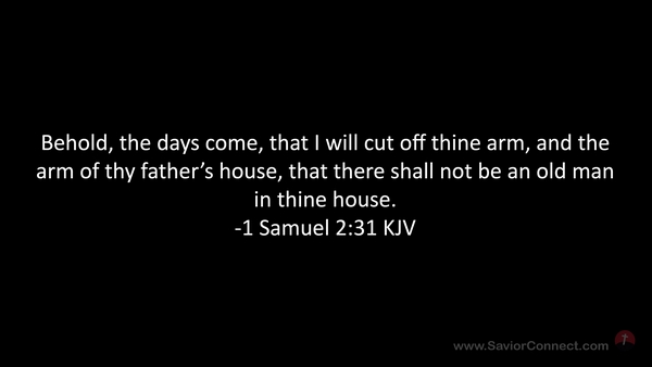 Behold, the days come, that I will cut off thine arm, and the arm of thy father's house, that there shall not be an old man in thine house. -1 Samuel 2:31 KJV