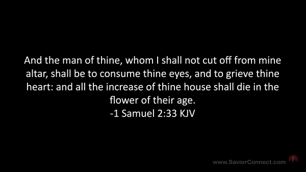 And the man of thine, whom I shall not cut off from mine altar, shall be to consume thine eyes, and to grieve thine heart: and all the increase of thine house shall die in the flower of their age. -1 Samuel 2:33 KJV