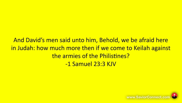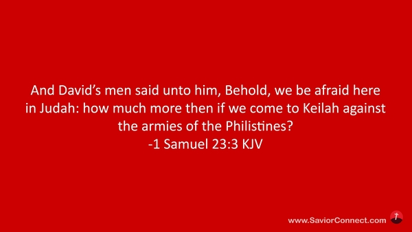 And David's men said unto him, Behold, we be afraid here in Judah: how much more then if we come to Keilah against the armies of the Philistines? -1 Samuel 23:3 KJV