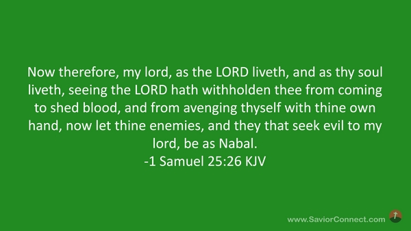 Now therefore, my lord, as the LORD liveth, and as thy soul liveth, seeing the LORD hath withholden thee from coming to shed blood, and from avenging thyself with thine own hand, now let thine enemies, and they that seek evil to my lord, be as Nabal. -1 Samuel 25:26 KJV