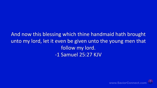 And now this blessing which thine handmaid hath brought unto my lord, let it even be given unto the young men that follow my lord. -1 Samuel 25:27 KJV