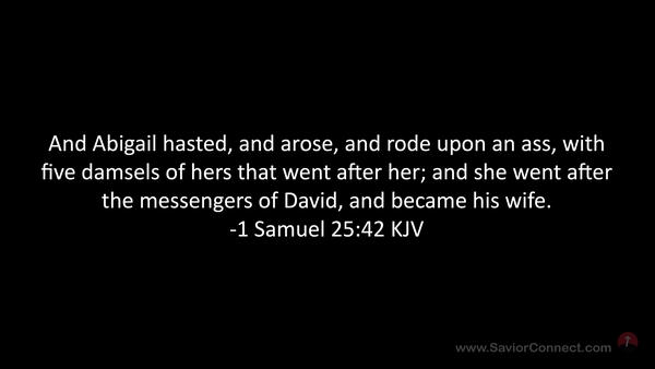 And Abigail hasted, and arose, and rode upon an ass, with five damsels of hers that went after her; and she went after the messengers of David, and became his wife. -1 Samuel 25:42 KJV