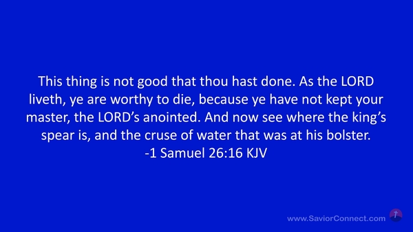 This thing is not good that thou hast done. As the LORD liveth, ye are worthy to die, because ye have not kept your master, the LORD's anointed. And now see where the king's spear is, and the cruse of water that was at his bolster. -1 Samuel 26:16 KJV