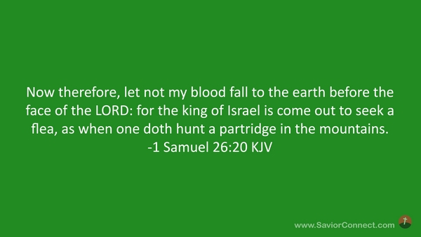 Now therefore, let not my blood fall to the earth before the face of the LORD: for the king of Israel is come out to seek a flea, as when one doth hunt a partridge in the mountains. -1 Samuel 26:20 KJV