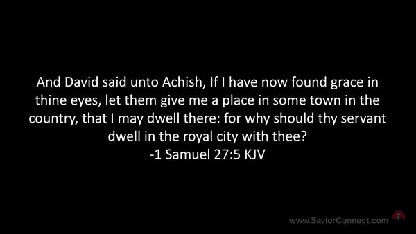 And David said unto Achish, If I have now found grace in thine eyes, let them give me a place in some town in the country, that I may dwell there: for why should thy servant dwell in the royal city with thee? -1 Samuel 27:5 KJV