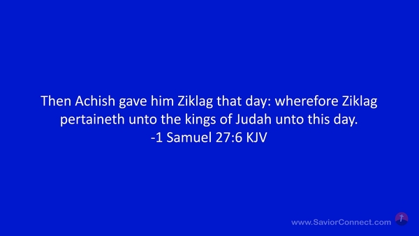 Then Achish gave him Ziklag that day: wherefore Ziklag pertaineth unto the kings of Judah unto this day. -1 Samuel 27:6 KJV