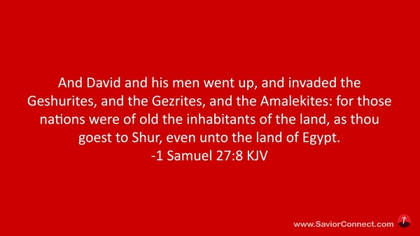 And David and his men went up, and invaded the Geshurites, and the Gezrites, and the Amalekites: for those nations were of old the inhabitants of the land, as thou goest to Shur, even unto the land of Egypt. -1 Samuel 27:8 KJV