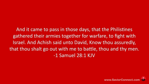 And it came to pass in those days, that the Philistines gathered their armies together for warfare, to fight with Israel. And Achish said unto David, Know thou assuredly, that thou shalt go out with me to battle, thou and thy men. -1 Samuel 28:1 KJV