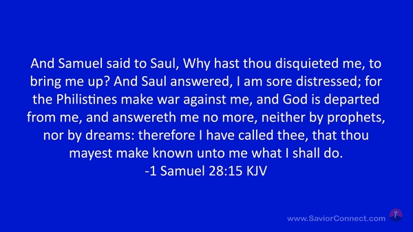 And Samuel said to Saul, Why hast thou disquieted me, to bring me up? And Saul answered, I am sore distressed; for the Philistines make war against me, and God is departed from me, and answereth me no more, neither by prophets, nor by dreams: therefore I have called thee, that thou mayest make known unto me what I shall do. -1 Samuel 28:15 KJV