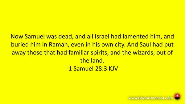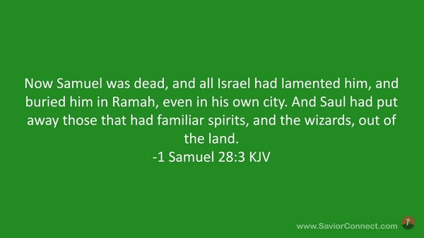 Now Samuel was dead, and all Israel had lamented him, and buried him in Ramah, even in his own city. And Saul had put away those that had familiar spirits, and the wizards, out of the land. -1 Samuel 28:3 KJV