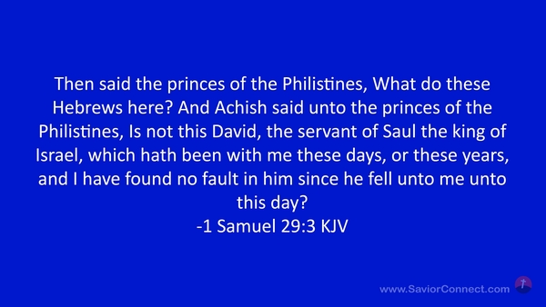 Then said the princes of the Philistines, What do these Hebrews here? And Achish said unto the princes of the Philistines, Is not this David, the servant of Saul the king of Israel, which hath been with me these days, or these years, and I have found no fault in him since he fell unto me unto this day? -1 Samuel 29:3 KJV