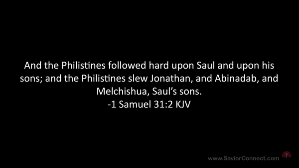 And the Philistines followed hard upon Saul and upon his sons; and the Philistines slew Jonathan, and Abinadab, and Melchishua, Saul's sons. -1 Samuel 31:2 KJV
