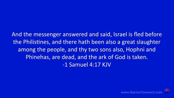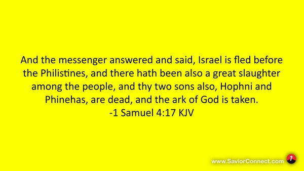 And the messenger answered and said, Israel is fled before the Philistines, and there hath been also a great slaughter among the people, and thy two sons also, Hophni and Phinehas, are dead, and the ark of God is taken. -1 Samuel 4:17 KJV