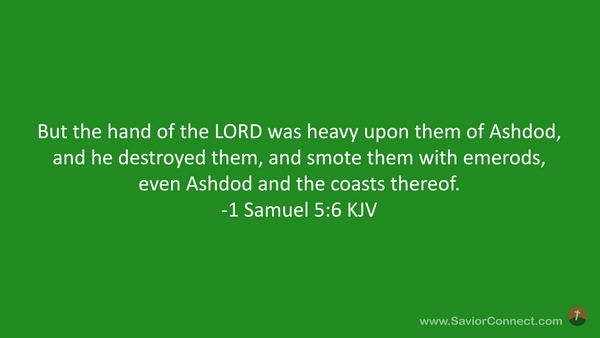 But the hand of the LORD was heavy upon them of Ashdod, and he destroyed them, and smote them with emerods, even Ashdod and the coasts thereof. -1 Samuel 5:6 KJV