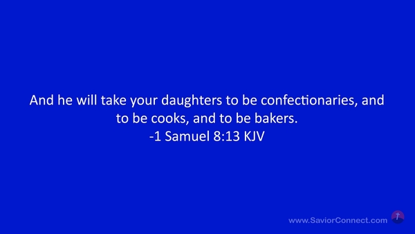 And he will take your daughters to be confectionaries, and to be cooks, and to be bakers. -1 Samuel 8:13 KJV